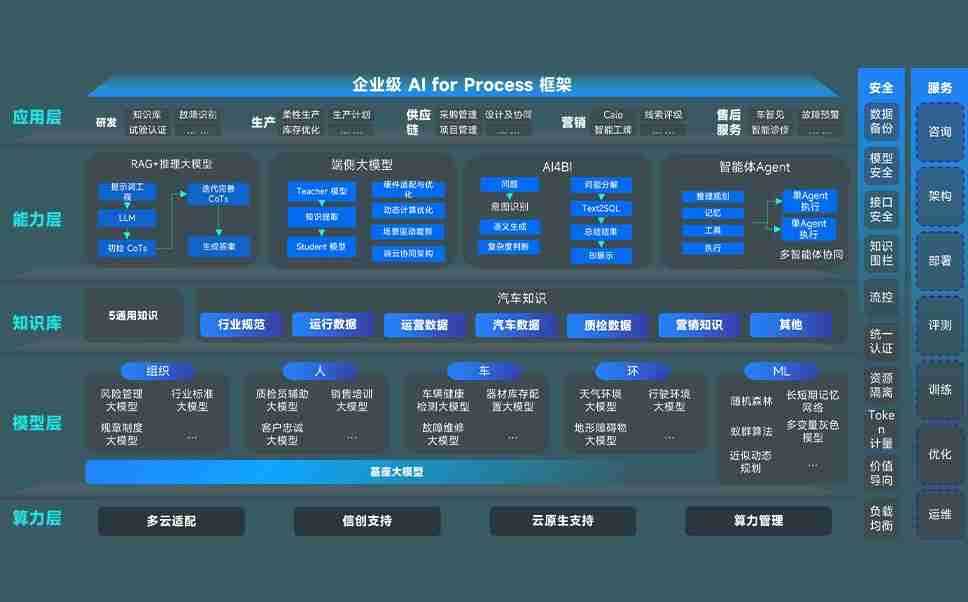 端到端的一站式AI工作空间深度融合了从企业战略规划到日常经营的全流程业务板块,,,,定向解决车企内部领域多、、部门多、、、链条长、、、、场景碎片化等难题,,,,支持车企快速构建以AI为核心的生产力写作体系,,,实现任务执行与AI能力的无缝集成与交互