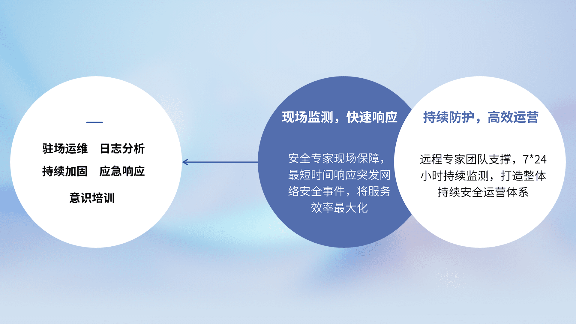 7X24小时持续监测安全事件,保持安全策略有效性,降低资产脆弱性风险,,,,精准拦截黑客攻击,,,,减少被黑客利用的机会,,第一时间遏制,,,,降低损失。。。。